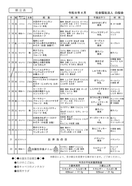 | 保育標準時間 保育短時間 | 8:30~16:30 |