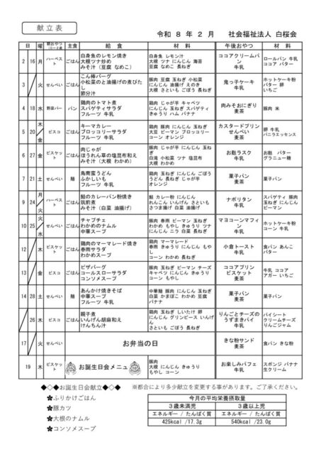 | 保育標準時間 | 月~金 | 7:00~18:00 | 18:00~20:00 (0歳児は誕生月の翌月から) |